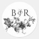 Eleganter Hochzeitsaufkleber mit schönen handgezeichneten Blumendetails in schwarz mit den Initialen des Paares. Ideal als Umschlag Aufkleber- oder Bevorzugungslabel. Teil unserer Kollektion "Schwarz-Weiß-Verzauberungskärnten" mit einer Vielzahl von koordinierenden Produkten, inklusive Umschlägen. Die gesamte Sammlung finden Sie unter: https://www.zazzle.com/collections/black_and_white_enchanting_garlands_collecti-119853596760425870