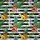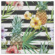 Watercolorananas und tropische Blumen auf Schwarzstreifenhintergrund