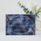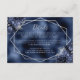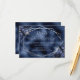 Diese elegante, moderne Hochzeitsausstattungskarte besticht durch einen silbernen geometrischen Rahmen, der mit blauen Marineblumen und silberfarbenen Imitate-Glitzer auf einem seeblauen Imitat-Hintergrund verziert ist. Der anpassbare Text kombiniert silbergraue, weißliche Handschrift und kopperplate-Schriftart. Die blaue Folie der Marine wird auf der Rückseite wiederholt.