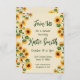 Mit dieser fröhlichen, gelben Sonnenblume-Einladung stärken Sie Ihre Veranstaltung! Schöne Sonnenblumen schaffen einen wunderschönen Rahmen um den modernen, kalligrafischen Text und schaffen so ein niedliches und dennoch raffiniertes Aussehen. Ein blassgelber Hintergrund zieht alles zusammen, um eine fröhliche und helle Einladung zu erhalten, die perfekt für Baby-, Hochzeit-, Brautwasser- und Geburtstagsduschen ist!