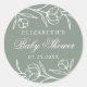 Elegante Blumen-Babyduschaufkleber mit weißgezeichneten Blume und Blätter mit einem schlängelgrünen Hintergrund. Personalisieren Sie die gezeichneten Blumen-Babyduschkleber mit Ihrem Namen und Datum. Die floralen Aufkleber eignen sich perfekt zum Abdichten von Baby-Dusche Gefälligkeitssäcken, Einladungsumschlägen und vielem mehr! Entworfen, um sich mit unserer Kollektion Sketched Floral abzustimmen.