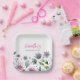 Diese Babyduschpapier-Teller verfügen über eine untere, gröbere Aquarellfarbe und botanische Blume. Der Name der Mama ist Set in rosa Typografie. Verwenden Sie die Vorlagenfelder, um Ihren benutzerdefinierten Text hinzuzufügen. Eine schöne Wahl für Mädchen Duschideen und Babyduschdekorationen. Um mehr Frühling oder Sommer Baby Dusche Papier Teller und Servietten wie dieser besuchen www.zazzle.com/dotellabelle Einzigartiges Design exklusiv zu Do Tell A Belle.