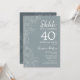 Einfache Marine & graublaue Überraschung 40. Geburtstag Party Einladung. Minimalistisches modernes Design in schiefer, staubblauer Farbe mit botanischen Akzenten und Typografie-Script-Schriftart. Stahlblau-weiß-feminine Blütenkarte perfekt für eine stilvolle Frauen Überraschungsfeier. Kann für jedes Alter angepasst werden.