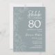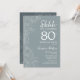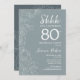 Einfache Marine & graublaue Überraschung 80. Geburtstagsfeier Einladung. Minimalistisches modernes Design in schiefer, staubblauer Farbe mit botanischen Akzenten und Typografie-Script-Schriftart. Stahlblau-weiß-feminine Blütenkarte perfekt für eine stilvolle Frauen Überraschungsfeier. Kann für jedes Alter angepasst werden.