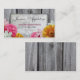 Schöne persönliche nennende Karten mit den rosa, weißen und gelben Blumen über einer Steinoberfläche, über verblaßten rustikalen hölzernen Planken und personalisiert mit Ihrem Namen, E-Mail und Telefonzahl.
