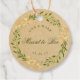 Maßgeschneiderte Hochzeitshonig-Liebesmarken, die mit einem blühenden Kranz in Wasserfarbe auf rustikalem Kraftuntergrund versehen sind. Personalisieren Sie mit den Namen von Braut und Bräuchen und dem Hochzeitstag. Perfekt auf Gastgeschenk Hochzeit-Boxen, Honiggläser und mehr!