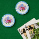 Poker chips with beautiful flower bouquet images. The background, image and text can be modified. Original artwork by W.B.