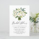 Mit dieser individuell gestaltbaren Brautdusche laden wir Sie zu Ihrer Veranstaltung ein. Es verfügt über einen Blumenstrauß mit weißen Blume in Aquarelltönen. Personalisieren Sie Ihre persönlichen Daten, indem Sie Ihre eigenen Daten hinzufügen. Diese weiße Blumendusche lädt zu Frühlings-Brautpartys und Brautpartys ein.