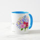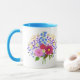 Eine Tasse mit einem schönen Blumenstrauß-Motiv. Der Hintergrund, das Bild und der Text können personalisiert werden. Originalkunstwerk von W.B.