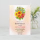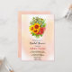 Diese elegante, einfache kalligraphische Blumen-Hochzeitseinladung eignet sich für eine moderne Blumenhochzeit im Sommer. Das romantische minimalistische Design mit Sonnenblumen Blumenstrauß rot Rosa Blumendusche Einladung