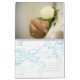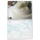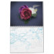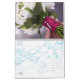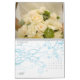 Ein kundengerechter Kalender, zum des Jahres Ihrer Hochzeit zu feiern. Die Vorderseite kennzeichnet die einzigartige "Blumenstrauß-Strecke" vom Studio LUMIERE mit einem SahneBlumen-Set im Hintergrund in diesen photographischen Bildern mit einer Überlagerung der Braut, die ihren Blumenstrauß der Rosen und des Laubs hält. Kalligraphieskripttext mit dem Wort "Hochzeit" ist in der Basis des Bildes mit Wasserzeichen versehen. Text ist für die Daten, die der Kalender beginnt und Ihre Namen kundengerecht. Jeder Monat kennzeichnet eins der Schlüsseldetails, die Hochzeiten schön auf jedem sensorischen Niveau machen: die Blumen.