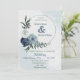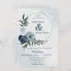 Schöne botanische Hochzeitseinladung mit weißen, staubblauen und marineblauen Blumen mit grünen Blätter auf einem grünen Kreis, die einen hübschen romantischen Kranz bilden. Es eignet sich sowohl für Hochzeiten als auch für Verlobungen. Für weitere Informationen klicken Sie bitte auf die obige Sammlung oder kontaktieren Sie mich.