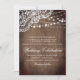 Blumenstrauß und Lichterketten Rustikale Holzverhe Einladung