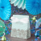 Die Geschenkboxen der eierblauen Gastgeschenk Hochzeit des Chic Robin mit einem kleinen braunen Polka Dottern-Muster und einem braunen Blumengeflecht-Look am Boden. Personalisieren Sie den braunen Text auf der Klappe, um zu lesen, was Sie gewollt haben.
