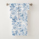 Hübsches, blau-weiß geblüftetes dreiteiliges Badetuch-Set. Klassisches zeitloses Design.