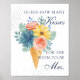 Blumensukkulent Macaron Brautparty Party Game Poster mit dem Text "Raten Sie, wie viele Küsse für die bald zu sein Mrs." Akzent mit eleganten Aquarellfarben Blume und Makaronen in einer Eis-Kegel in weichen Korallen, aquamarin, blau und gelb auf einem weißen Hintergrund. Personalisieren Sie den Text in den Textfeldern, indem Sie ihn bearbeiten. Entwickelt für Sie von ©Evco Studio www.zazzle.com/store/evcostudio