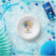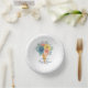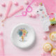 Blumensukkulente Macaron Brautparty Papier Party Papier Teller mit eleganten Aquarellfarben Blume und Makaronen in einem Eis-Kegel in weicher Koralle, aquamarin, blau und gelb auf einem weißen Hintergrund. Personalisieren Sie den Text in den Textfeldern, indem Sie ihn bearbeiten. Entwickelt für Sie von ©Evco Studio www.zazzle.com/store/evcostudio
