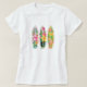 Hawaiianische Blumensurfbretter schmücken den T - Shirt.
