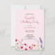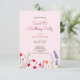 Eine stylisierte Auswahl an illustrierten Wildblumen in Rosa, 16 in einer Vierfolie, für eine 16 . Geburtstag Geburtstagsparty. Mädchen und süß Design. Personalisieren Sie Ihre Party-Informationen. Rote, rosa, grüne und lila Blumen.