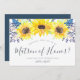 Auf der rustikalen Blumenkarte des Brautparty finden Sie eine obere Ecke mit gelben Aquarellblumen und blauen Wildblumen. Personalisieren Sie mit Ihrer Ehrenkräfte fordern Sie Details (mit "Werden Sie mein Ehrenkollege sein? Ich kann nicht sagen, dass ich ohne dich bin"), in der modernen handgeschriebenen Schrift und in der traditionellen Serifenschrift. Die Einladungen kehren zu einem reichen Hafen blau.