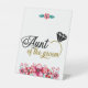 Dieses Blumentante des Groom Pedestal Schildes bietet eine einfache und elegante Erinnerung, wo die Bräutigam bei Ihrer Hochzeit sitzt.