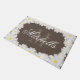 Kundenspezifische Monogrammnamen- und -farbgänseblümchen-Blumenblumentürmatte. Stellen Sie Ihre eigene kundenspezifische mit Monogramm Innen-/Fußmatte im Freienmit kundenspezifischem Hintergrund her zu färben und Text. Addieren Sie Ihre eigene personalisierte Empfangsmeldung, Familiennamen, Familiennamen, Anfangsbrief oder lustiges Zitat. Niedliche Geschenkidee für neues Zuhause/Housewarming-, weddingort, Speicher, Geschäft, Firmenbüro, stilvolle Skripttypographie des Geschäfts etc. Personalizable Schablone. Stellen Sie Ihre eigene noble Blumeneintrittsmatte/-wolldecke für Haustür/Eingang oder Halle her. Kundengerechte Wohngestaltung/Dekorationen für Ihr Chichaus. Niedliche Geschenkidee für Paare oder weds eben. Inspiriert durch Natur. Kakifarbige beige braune Farben.