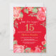 Rote Flora Überraschung 15. Geburtstag Einladung für Frauen. Botanische Blume der Wasserfarbe. Gold Glitzer. Rosa Peonies Blumengebirge Blume. Kinder Mädchen Lady Geburtstag. Roter Hintergrund. Für weitere Anpassungen klicken Sie bitte auf die Schaltfläche "Anpassen" und verwenden Sie unser Designwerkzeug, um diese Vorlage zu ändern.