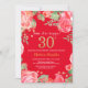 Rote Flora Überraschung 30. Geburtstag Einladung für Frauen. Botanische Blume der Wasserfarbe. Gold Glitzer. Rosa Peonies Blumengebirge Blume. Erwachsener zum Geburtstag. Roter Hintergrund. Für weitere Anpassungen klicken Sie bitte auf die Schaltfläche "Anpassen" und verwenden Sie unser Designwerkzeug, um diese Vorlage zu ändern.