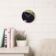 Bild auf rundem, mittelgroß, Wanduhr ist die Nahaufnahme einer teilweisen tiefen - Rosa - lila Winden-Wildblume. Das Bild stellt den Vibrancy vom empfindlichen, wenig Blume zur Schau.