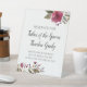 Dieses Gedenkschild mit seinen bordeauxroten Aquarellfarben und der Mischung aus Kalligraphie und einfachen Schriftart ist eine schöne Ergänzung zum Stuhl, in dem der Groomvater saß.