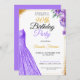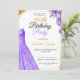 Mit violetten Aquarellblumen, vergoldeten Glitzer-Konfetti, einem einfachen Rahmen und einer lila Glitzer-Kleidung Silhouette, strahlt dieses Design Eleganz und Funkeligkeit aus, perfekt zum Feiern eines 90. Geburtstages.