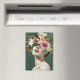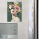 Ein faszinierendes digitales Kunstwerk einer Frau mit Blume und üppiger Vegetation, das ihr Gesicht schmückt, ihre Augen verschleiert und ein Gefühl von Geheimnis und Verbindung zur Natur schafft. Ihre sanften, stilisierten Merkmale kontrastieren mit den pulsierenden Blume und dem blühenden Laub, während der üppige grüne Hintergrund die Schönheit ihrer Blumenkrone unterstreicht. Die Komposition verbindet Surrealismus und Eleganz und verkörpert eine Harmonie zwischen menschlicher Form und Natur.