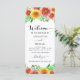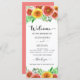 Modernes und elegantes Hochzeitsprogramm für Wasserfarben. Die Hochzeitskarte beinhaltet eine moderne, handgeschriebene Schriftzeichen-Typografie mit einem schicken und schlichten, rosa und gelben Frühling-Blume-Design, in dem Sie Ihre individuellen Programminformationen hinzufügen können.