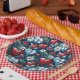Lebhafte, rote, grüne und blaue Herzen, die mit ihren blumengeschmückten Mustern geschmückt sind. Dieses Design verbindet Boho- und Hippie-Ambiente mit der Wärme der Urlaubssaison. Ideal, um Ihren Weihnachtsfeiern eine Touch von Volkskunst hinzuzufügen.