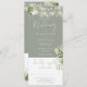 Eine ganzheitliche Weissgrün-Einladung mit hübschen Saitenlichtern, rustikalem botanischem Blumengrün und eleganter Typografie. Die Einladung enthält eine RSVP-Karte, die abgeschnitten werden kann, und Informationen zu den Gästen. Entwickelt von Thisisnotme©