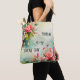 Tote Tasche mit einem Bild von rosa Blume auf einem aquamarin türkisfarbenen künstlerischen Hintergrund. Sie können eigene Zitate oder (lustige) Texte hinzufügen. Der Sommer ist das ganze Jahr über gut zu feiern.