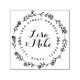 Individuell gestaltete, kreisförmige, selbstfarbende Rücksendeadresse-Briefmarke mit handgezeichnet Blumenkranz und Pärchennamen in eleganter Handkalligraphie. Ideal, um Ihren Hochzeitsaufenthalten, Karten, Favoriten und Geschenken eine Touch rustikalen Stils hinzuzufügen.