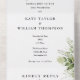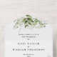 Das Ganze in einer Hochzeitseinladung mit hübschem, grünem Blattwerk und eleganter moderner Typografie. Die Einladung enthält eine perforierte RSVP-Karte, die für Sie individuell adressiert oder links als leere Karte für die Handschrift der Adressdaten Ihres Gastes verwendet werden kann. Entwickelt von Thisisnotme©