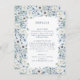 Blue Floral Wedding Details Eintrittskarte. Treten Sie ein in einen Garten botanischer Schönheit und entdecken Sie ein atemberaubendes Hochzeitsdetails Gehäuse-Design mit schönen handbemalten Aquarellfloralen in einem hübschen Vintagen Rahmen. Die zarte, staubige Blau-, Creme- und Weißrosen und die saftig grüne Eukalyptus-Vegetation schaffen eine rustikale Eleganz, die sich perfekt für Ihre Veranstaltung eignet! Der blau-graue Schriftart und die subtilen blauen Touchs ergänzen das zeitlose Design perfekt. Lass dieser exquisiten Einladung zum Ausdruck Ihrer rustikalen romantischen Eleganz und zeitlosen Stil.