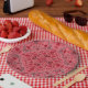 Blumenziegel in Rot und Wassermelone in Rosa Pappteller