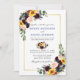 Moderne elegante Watercolor Burgund Blumen Einladung Hochzeitsfeiern Einladung umfasst burgundische Rose, rosa Rosen, rote Blume, blaue Blumen, Sonnenblumen, Eukalyptus-Blätter und botanische Vegetation. Goldrahmen.