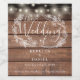 Dieses elegante Hochzeitslabel mit hübschen Saitenlichtern kann mit Ihren Informationen in eleganter Schrift auf rustikalem Holzpaneelhintergrund personalisiert werden. Entwickelt von Thisisnotme©