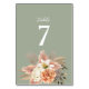 Fügen Sie Ihren Empfang-Tischen eine sanfte und romantische Touch mit dieser schlängelgrünen Tischnummer-Karte hinzu, die von Aquarellpfirsich und Elfenbeinfloralen schön hervorgehoben wird. Das elegante botanische Design verbindet beides mit rustikalem Charme und eignet sich ideal für Hochzeiten im Garten oder im Freien. Frame it oder Anzeige in einem Halter für eine nahtlose Tischeinstellung. Benötigen Sie Hilfe mit einem passenden Stück? Kontakt: bpkolman@gmail.com