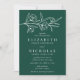 Elegante blumengeschmückte Einladungen mit weißen Blume und Blätter in der Nähe der Spitze des einladenden Ortes mit einem waldgrünen Hintergrund. Persönliche Hochzeitseinladung mit Ihren Namen und Hochzeitsdetails unten in klassisch weißer Schrift. Entworfen, um mit unserer Hochzeitskollektion Sketched Floral zu koordinieren.