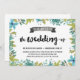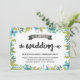 Diese hübsche, im Hinterhof gelegene Hochzeitseinladung zum Thema Hochzeitsfeier bietet eine wunderschöne blaue und grüne Kreidegrenze, eine hübsche Pinselskriptkalligraphie und ein rustikales Chic-Tafelbanner.