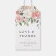 Bringen Sie diese eleganten Blumen-Tags an Ihre Gastgeschenke Hochzeiten, um sich bei den Gästen in schicken Stil zu bedanken. Die weißen Anhänger sind mit einem Strauß von Ebernbäumen und Rose in Rosa, Pfirsich und Elfenbein, mit Salbeigrün versehen. "Liebe und Dank" erscheint unten mit Ihren Namen und Ihrem Hochzeitstermin. Der gesamte Text kann für eine ultimative Anpassung bearbeitet werden.