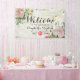 Polterabend Celebration Willkommenssignatur Vorlagen - Vintage Aquarellfarben Rosa Blume und elegante Streichlichter auf rustikalem Weiß Wash Soft Wood Texture Hintergrund. Ein perfektes Design für Ihren großen Tag! Alle Textstile, Farben, Größen können an Ihre Bedürfnisse angepasst werden.