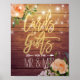 Hochzeitsgeschenktisch / Karten und Geschenke Hochzeitsschild Vorlagen - Elegante Imitate Gold Foil Script mit Peach White Roses Floral und String Lights auf rustikalem Holz Hintergrund. Ein perfektes Design für Ihren großen Tag! Alle Textstile, Farben, Größen können an Ihre Bedürfnisse angepasst werden.