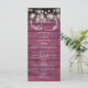 Mit hübschen Saitenlichtern und rustikalen, blumengeschmückten, handgezeichnet Illustrationen personalisieren Sie dieses stilvolle Menü mit Ihren speziellen Informationen zum Hochzeitstag auf einem bordeauxroten Holzpaneelhintergrund. Entwickelt von Thisisnotme©