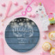 Diese stilvollen Teller mit hübschen Saitenlichtern und einem handgezeichnet Blumenmuster können mit schicken, weißen Schriftzeichen auf rustikalem, blauen Holzpaneelhintergrund personalisiert werden. Entwickelt von Thisisnotme©